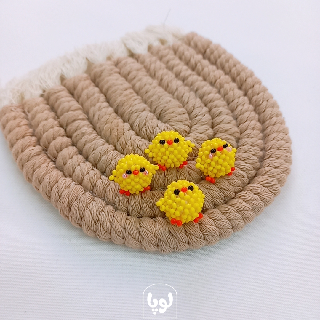 فونچارم منجوق بافی مدل جوجه رنگ زرد