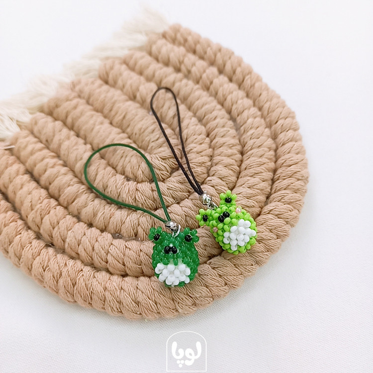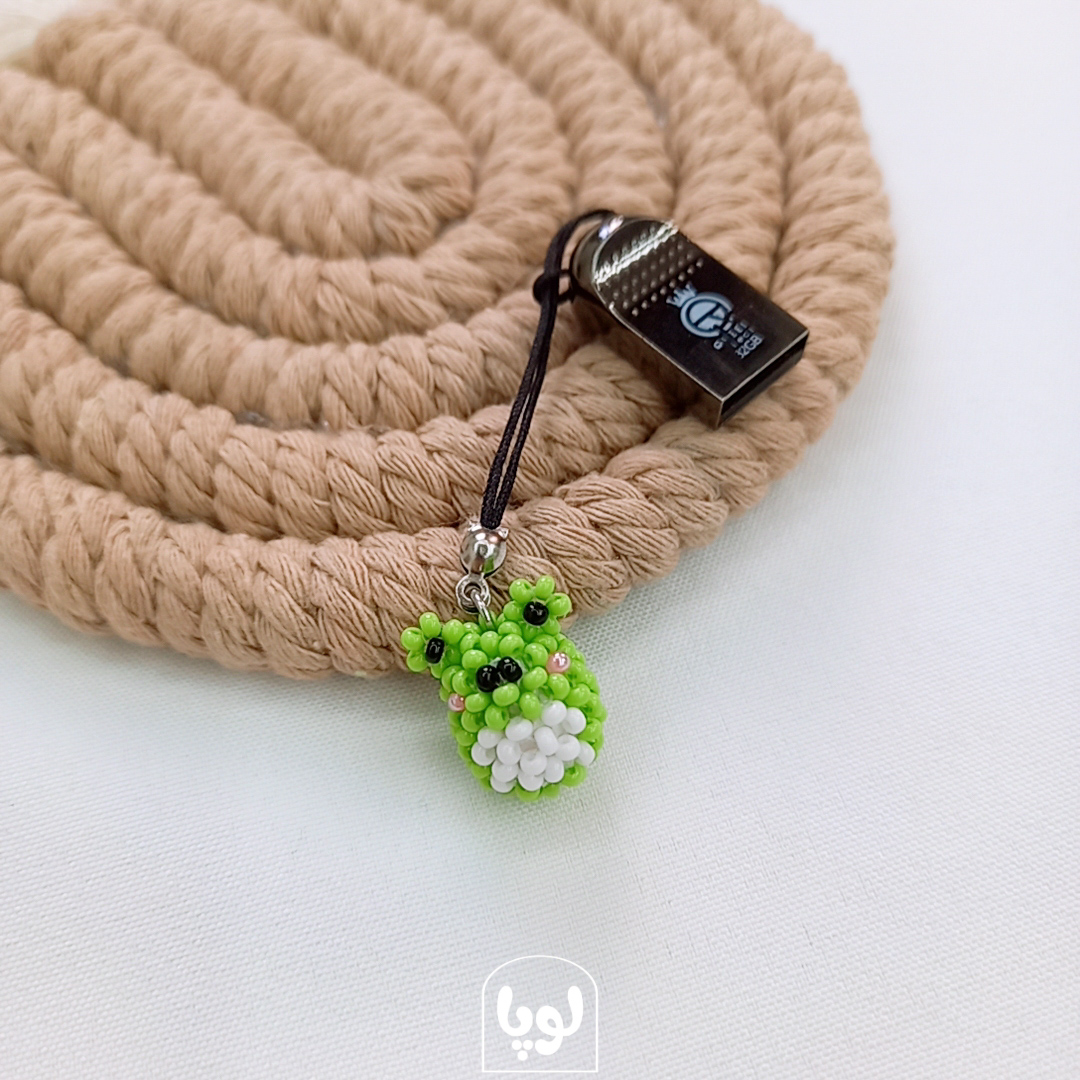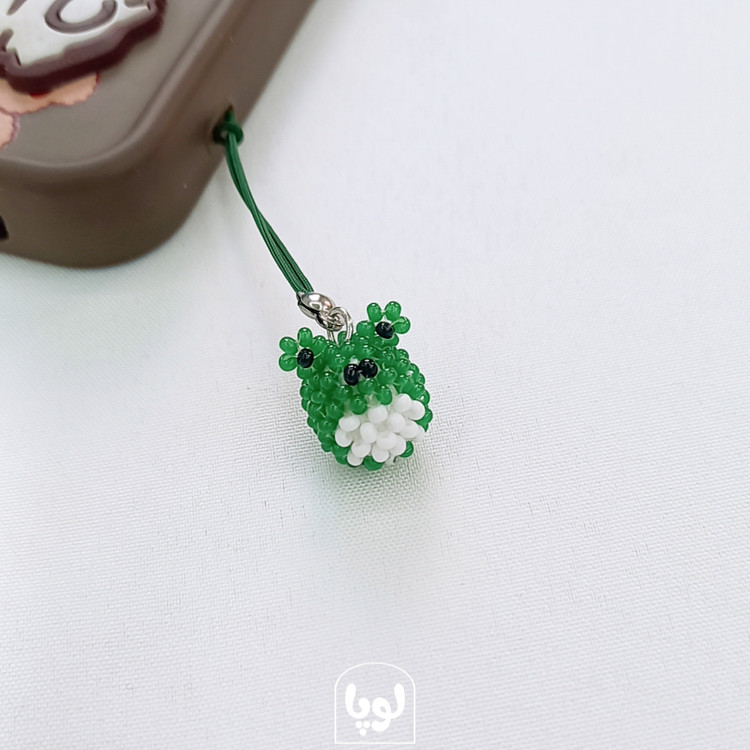 فونچارم منجوق بافی مدل قورباغه رنگ سبز