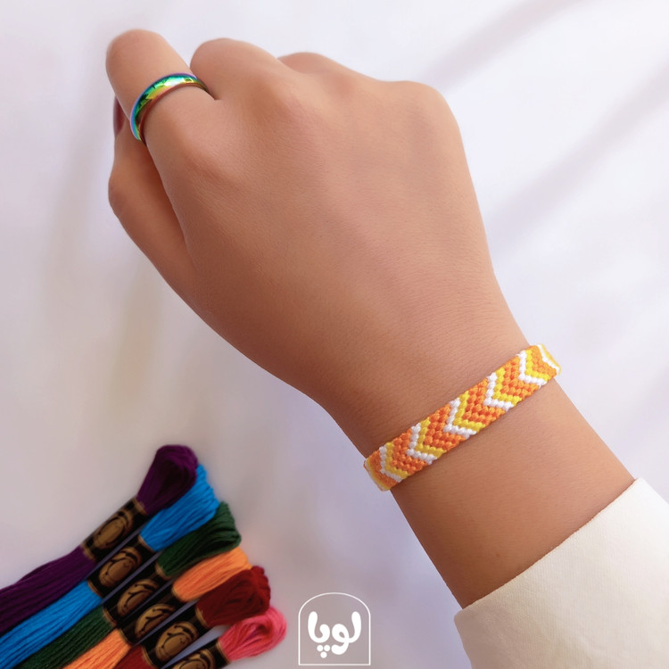 این دستبند صرفاً یک اکسسوری نیست، بلکه نمادی از دوستیهای رنگارنگ، لحظات شاد و خاطرات شیرین است. طرح جناقی ظریف آن، زیبایی رنگها را دوچندان کرده و سبکی و لطافت آن، استفادهی روزمره را لذتبخش میسازد.