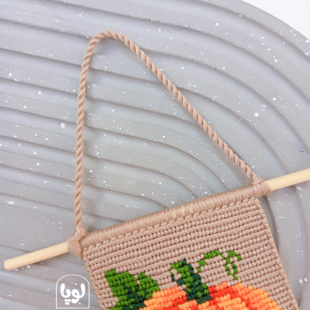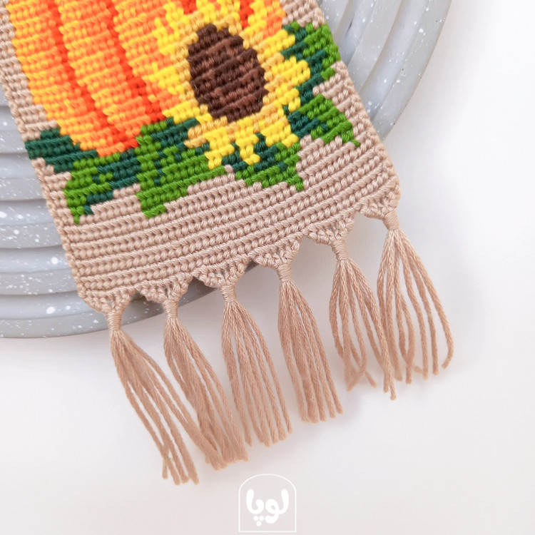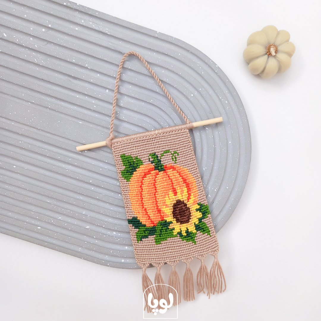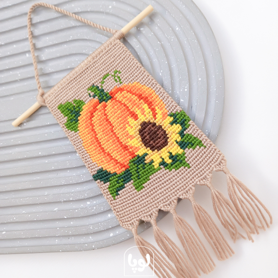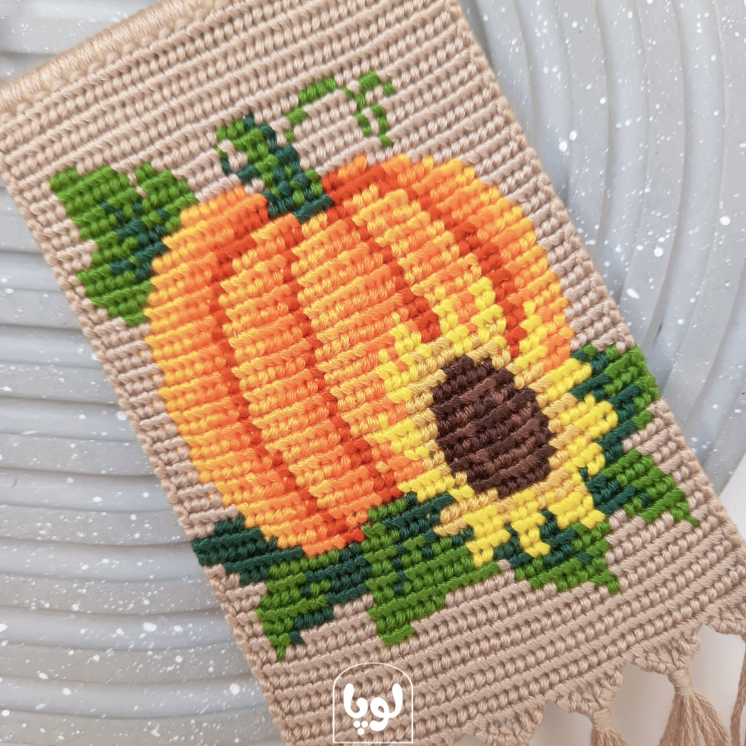 با نزدیک شدن فصل خزان، رنگهای گرم و دلنشین طبیعت بیش از همیشه خودنمایی میکنند. طرح کدو تنبل نارنجی با گل آفتابگردان زرین، نمادی از فراوانی، گرما و زیبایی پاییز است که با ظرافت تمام بر روی این آویز بافته شده است.