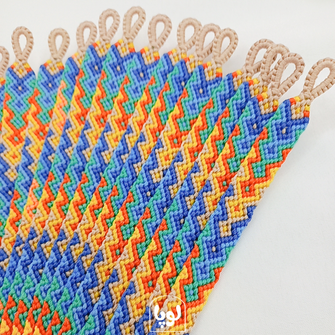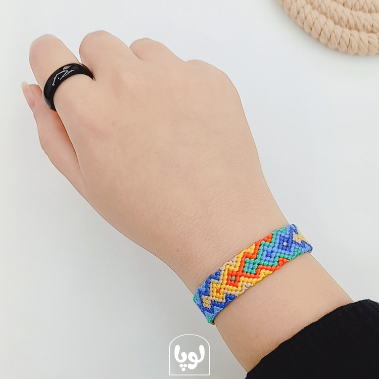 دستبند “زمزمه پریسماتیک”، آمیزهای خیرهکننده از رنگهای زنده و عمیق است که با الهام از طیفهای رنگی بینظیر چشمه پریسماتیک، هوشمندانه بافته شده است. هر گره، هر نخ، داستانی از طبیعت بکر و زیباییهای دستنیافتنی را روایت میکند.
