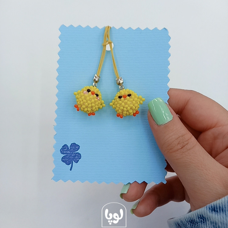 یه جفت فونچارم منجوقبافی دستساز، مدل جوجه زرد: